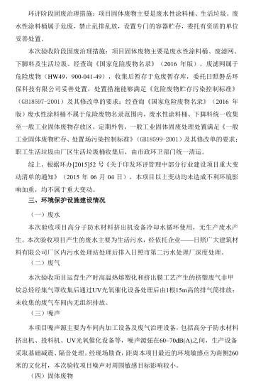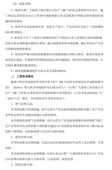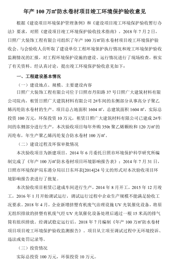 年產(chǎn) 100 萬㎡防水卷材項目竣工環(huán)境保護驗收意見