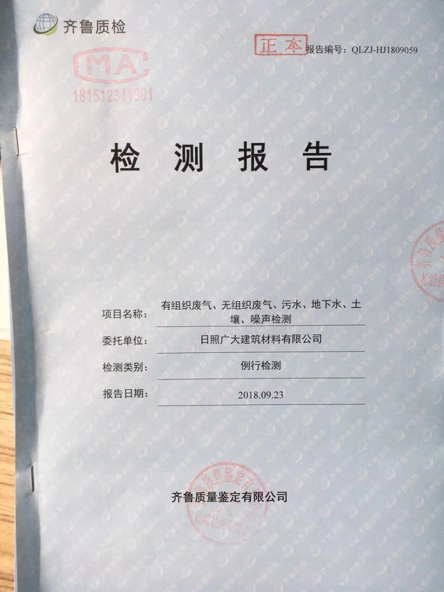 日照廣大建筑材料有限公司第三季度檢測(cè)報(bào)告