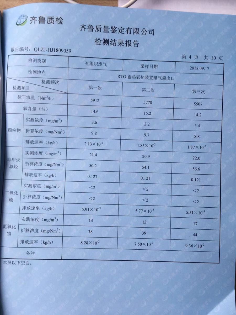 焚燒爐廢氣VOC 檢測(cè)結(jié)果